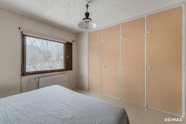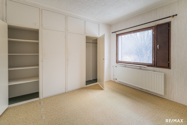 Kaikki sisätilat ja pinnat vaativat remonttia, mutta talon peltikatto on kunnossa ja käyttövesiputket kuin myös lämmitysputket vaihdettu komposiittiin.