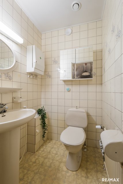 - Peilikaappi, pesukoneliitäntä, lattialämmitys (vesikiertoinen), ja käsienpesuallas