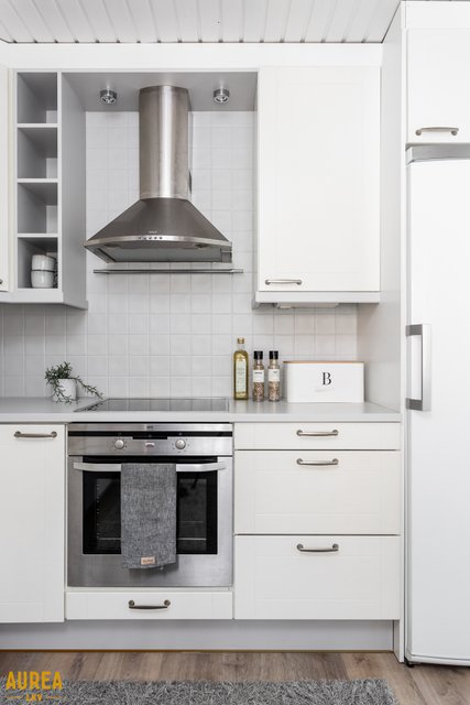 - Puustelli keittiö remontoitu 2006. Varustelu: apk, jääkaappi, pakastin arkku, liesi (keraaminen), uuni, liesituuletin. Lattia vinyyli, seinät maali, katto: maalattu puupaneeli.