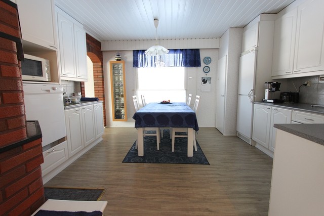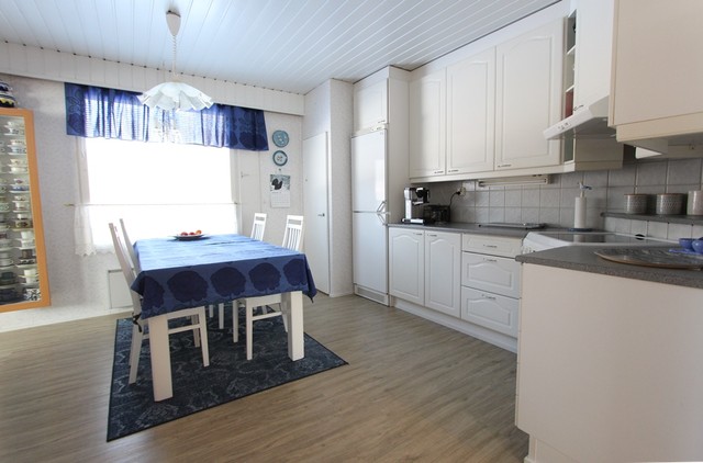 - Kaapistot, liesi, liesituuletin (uusittu 2020), jääpakastinkaappi, astianpesukone ja leivinuuni.