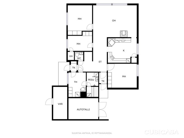 - Pinta-ala ei ole tarkistusmitattu ja todellinen pinta-ala voi olla suurempi tai pienempi, kuin ilmoitettu