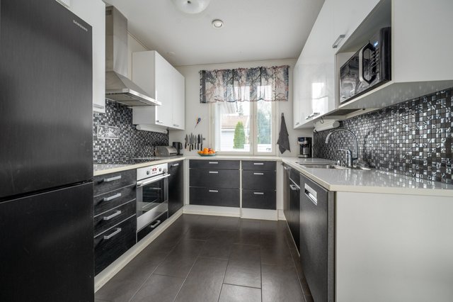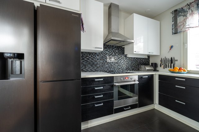 - Jääkaappipakastin (Samsung kylmälaite (2023)), astianpesukone ((2022)), uuni (kiertoilma), liesi (induktioliesitaso), ja liesituuletin