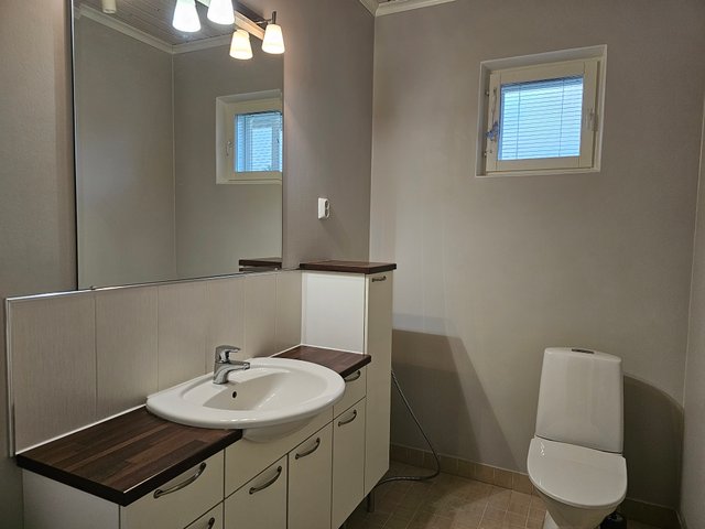 - WC-istuin, suihku, lattialämmitys, pesuallas, peilikaappi, ja allaskaappi