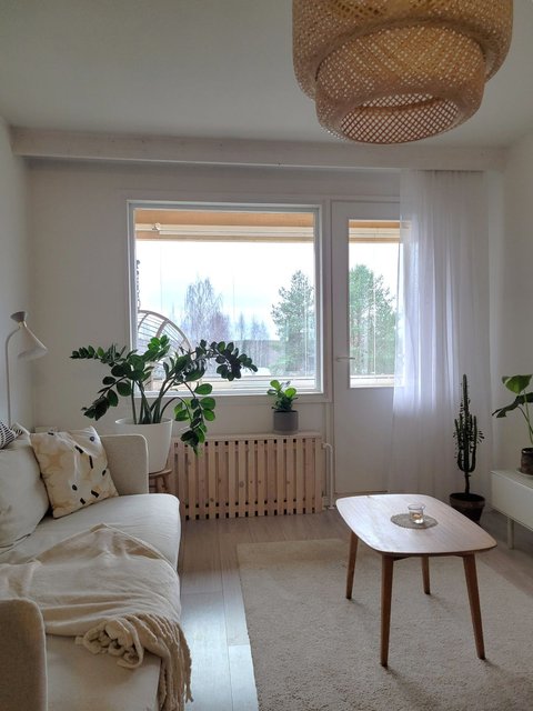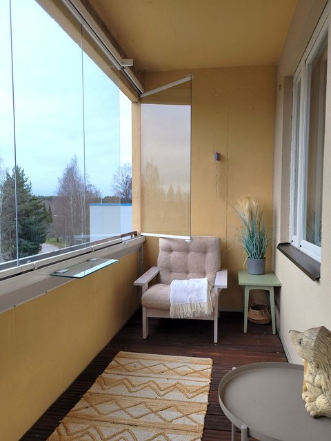 Upeaksi saneerattu asunto, nyt Kausalan kauneimpia koteja ! Väliseinien poistoilla ja siirroilla on avarrettu näkymä eteisestä suoraan olohuoneeseen ja moderniin avokeittiöön. Kahden makuuhuoneen lisäksi on tehty näppärä työhuone/makuuhuonetila keittiötilan jatkeeksi. Lattiat yhtenäisesti vinyylilankkua. Tilava kylpyhuone on remontoitu 2010. Vaatehuoneen lisäksi reilusti kaappitilaa. Lasitettu parveke on viihtyisäksi viimeistelty.