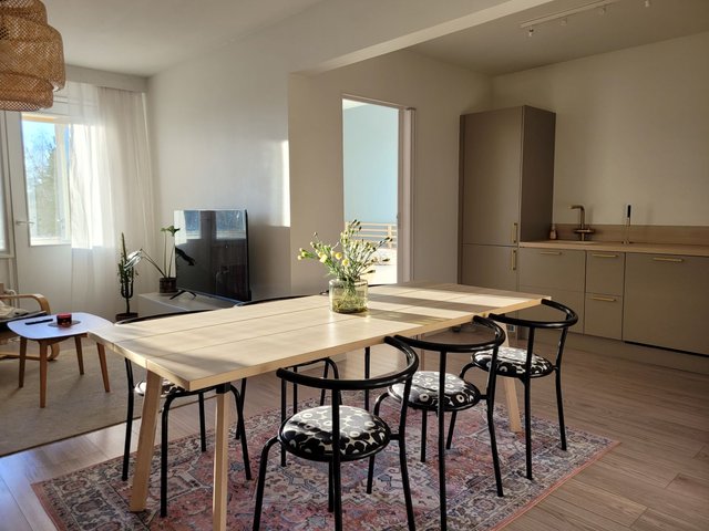 - kaksi reilunkokoista makuuhuonetta, lisäksi 2023 tilamuutoksin tehty työhuonetila