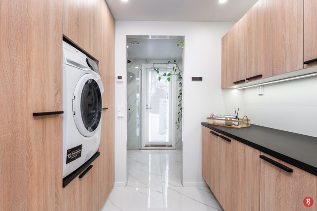 - Pesukoneliitäntä, lattialämmitys, pöytätaso, ja pyykkikaapit