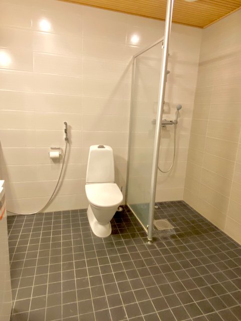 - WC-istuin, suihku, suihkuseinä, pesukoneliitäntä, lattialämmitys, peilikaappi, pesuallas, allaskaappi, ja bidee-suihku