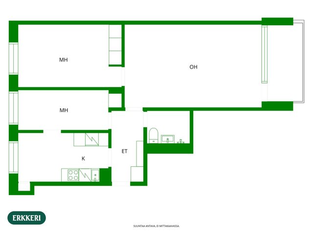 Parveke: Tilava eteläparveke, jossa voit nauttia auringosta ja rauhoittavasta ympäristöstä.
