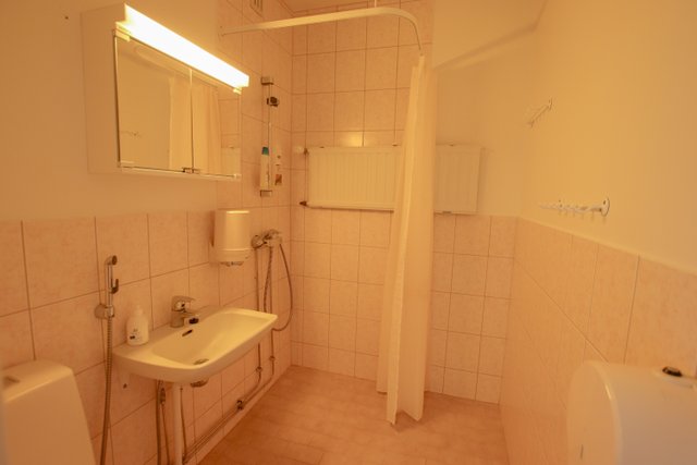 - WC-istuin, suihku, peilikaappi, pesuallas, ja bidee-suihku