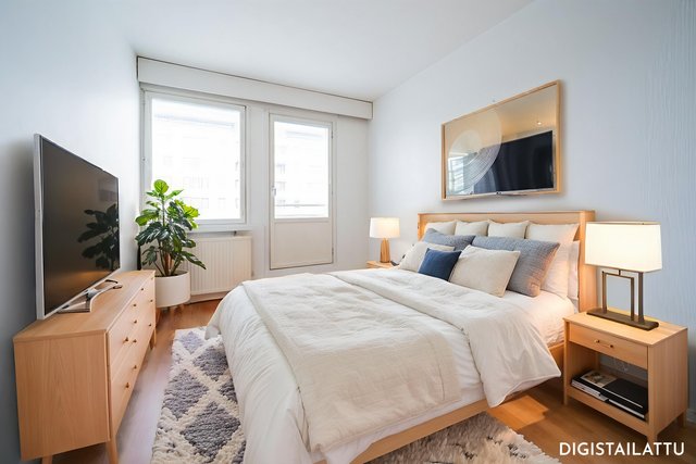 - Toimivan kokoinen makuuhuone, jonka yhteydessä ranskalainen parveke sekä vaatehuone.