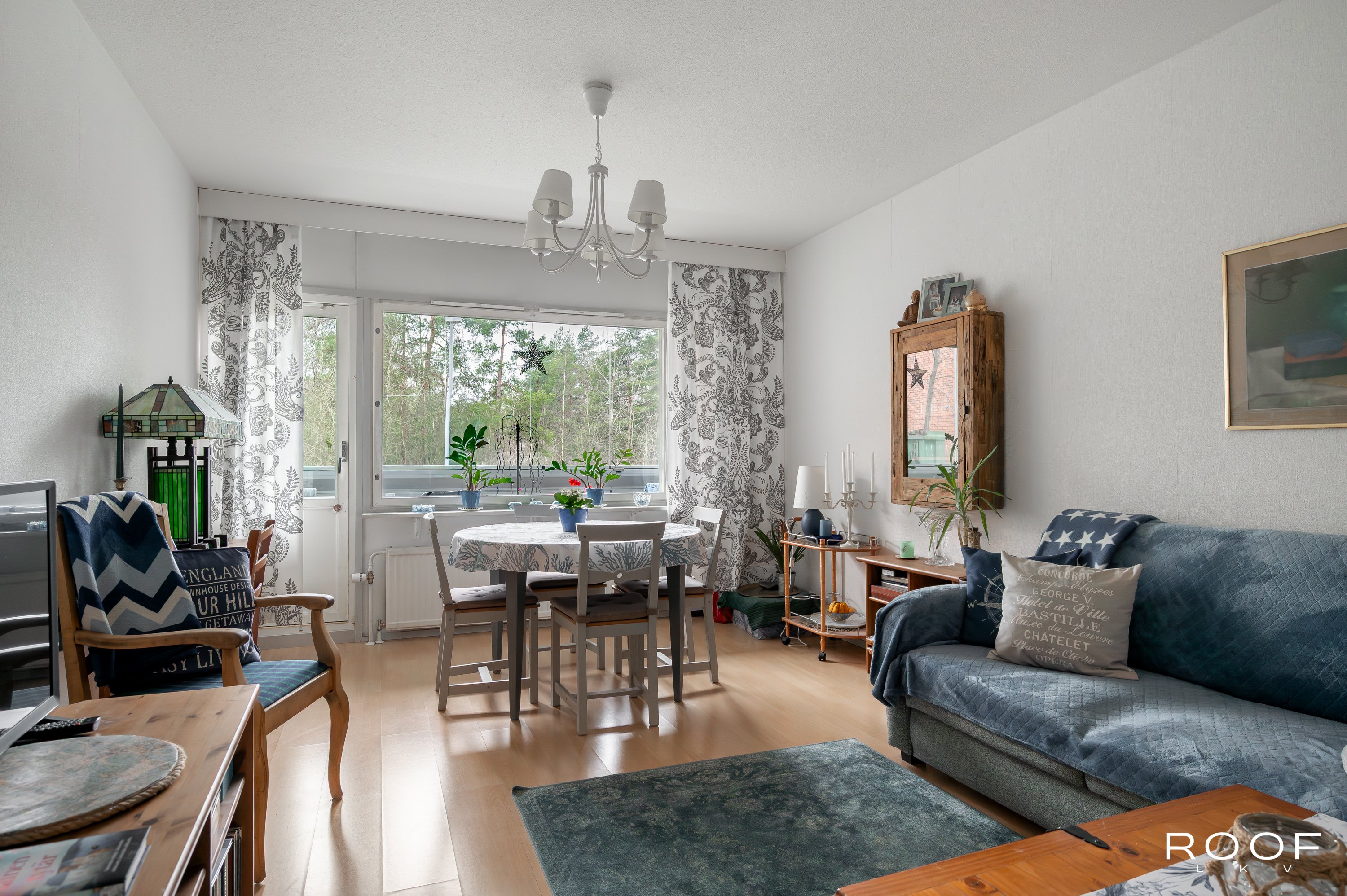 - Huoneistosta avautuvat rauhalliset ja vehreät pihanäkymät. Ikkunoista näkyy puustoa, avaraa piha-aluetta ja kävelyreittejä, mikä tuo asuntoon luonnonläheisen ja suojaisan tunnelman. Vastapäiset rakennukset jäävät etäälle, joten näkymät ovat avoimet ja viihtyisät ympäri vuoden.