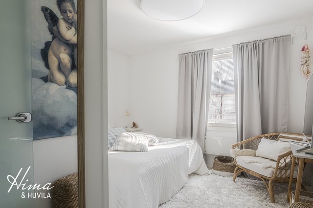 - Kaksi makuuhuonetta, jotka molemmat remontoitu 2020. Huoneisiin vaihdettu myös kauniit lasiset sähköpatterit.