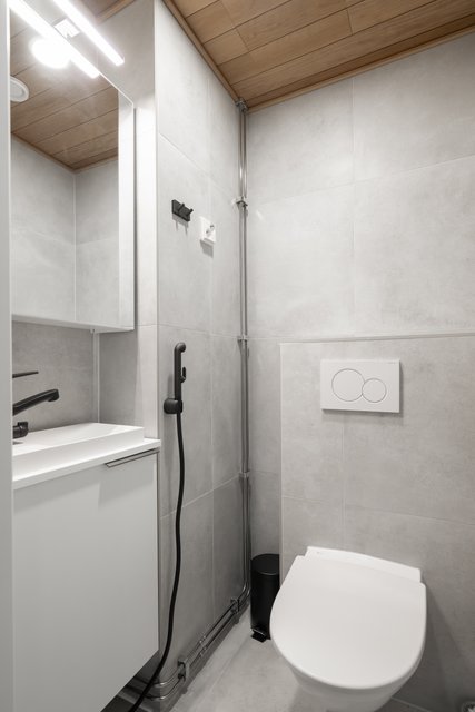 - WC:n varustuksena wc-istuin, bidee-suihku, peilikaappi, allaskaappi, sähköinen mukavuuslattialämmitys. Lattia- ja seinäpinnat laattaa.