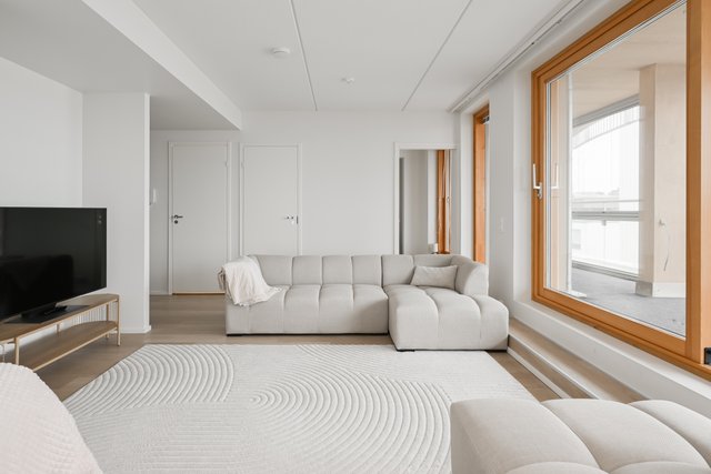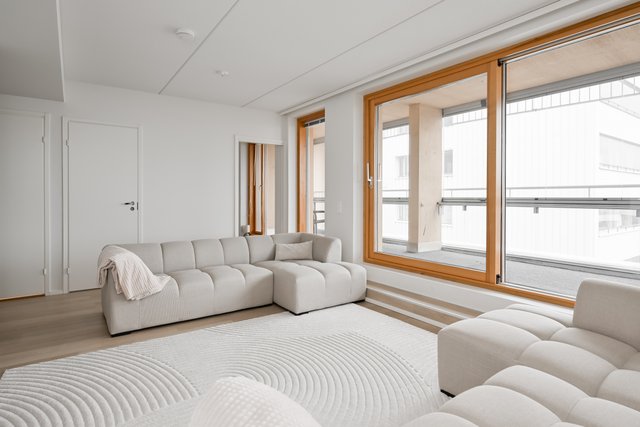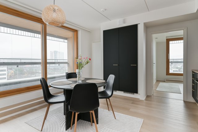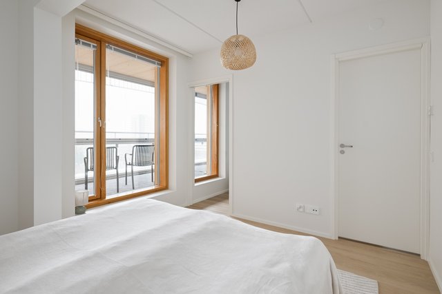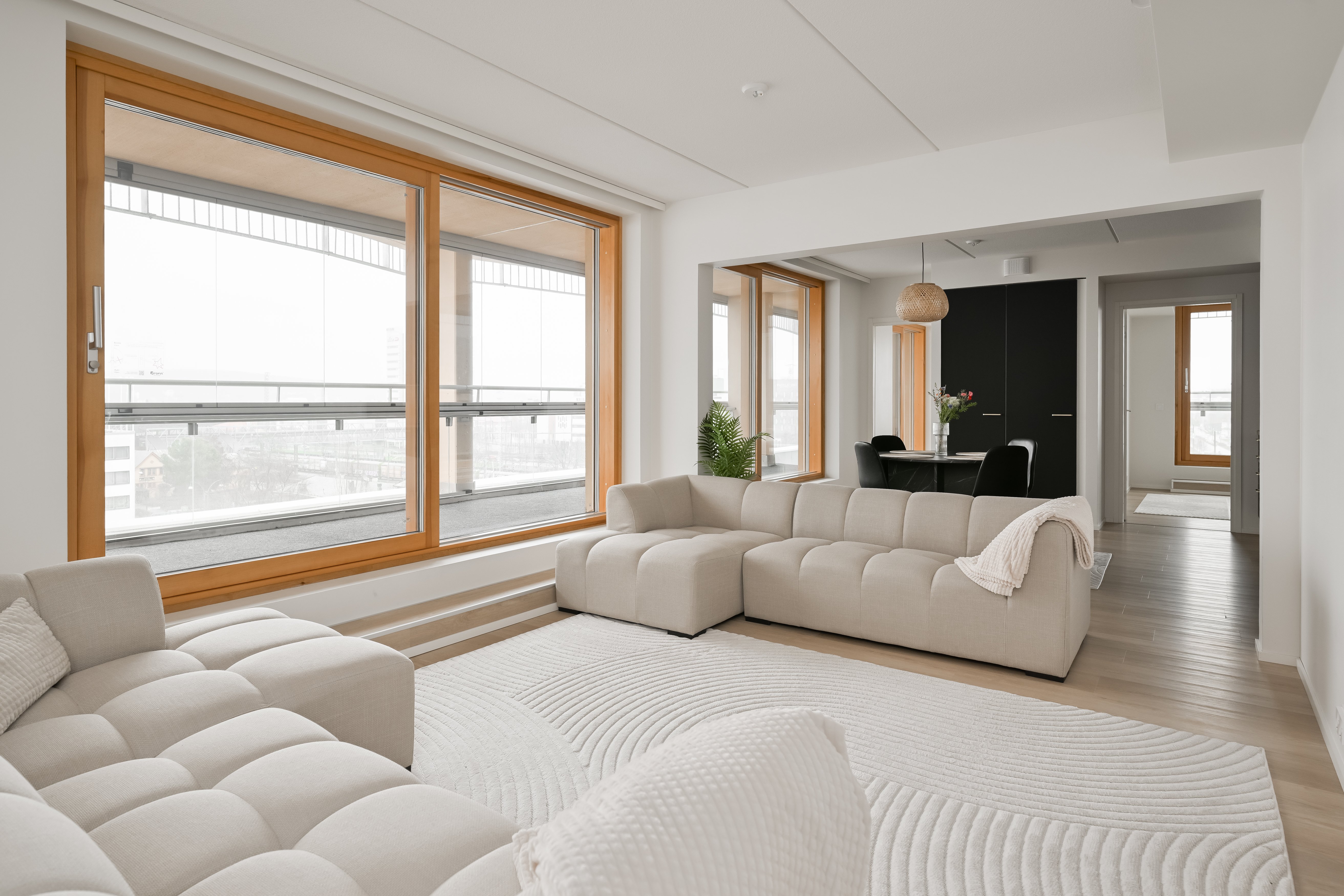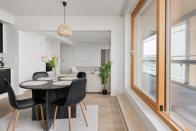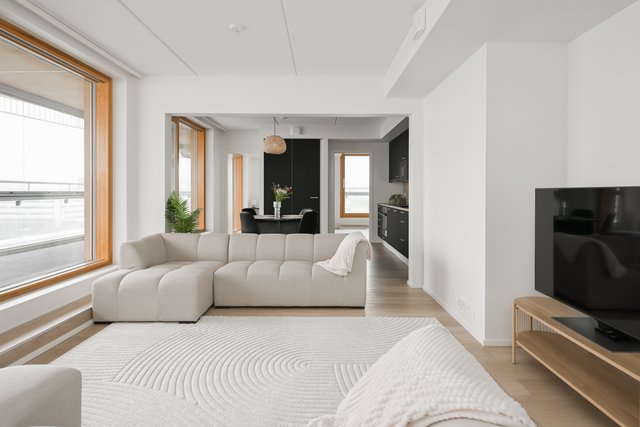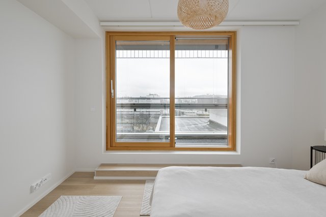 Asumismukavuus on huipussaan – vesikiertoinen lattialämmitys ja huoneistokohtainen viilennys pitävät sisäilman miellyttävänä vuodenajasta riippumatta. Runsas ikkunapinta-ala takaa, että valoa tulvii sisään ympäri vuoden.