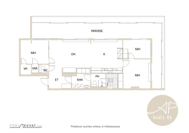 4h, k, kph, khh, s, wc, vh, lasitettu parveke