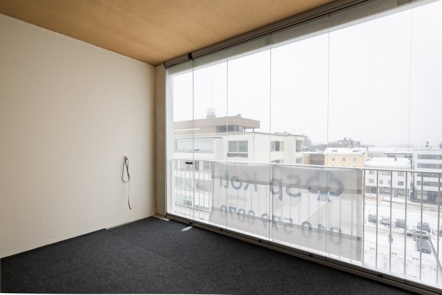 Iso lasitettu parveke on tämän asunnon toinen olohuone.
