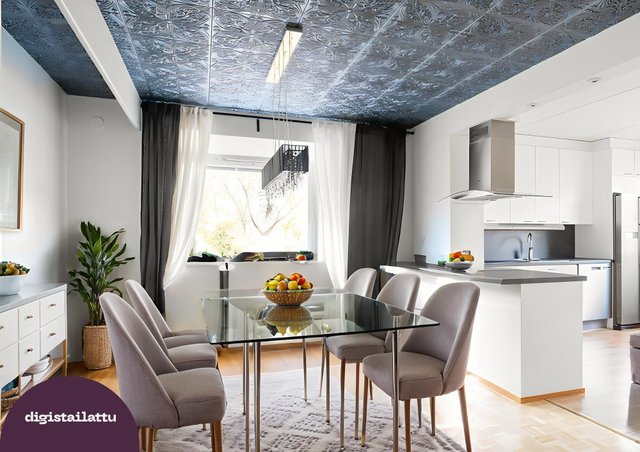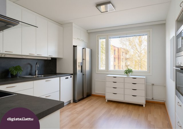 TÄMÄ ON KOTI MIKÄ PITÄÄ NÄHDÄ PAIKAN PÄÄLLLÄ! Kaunis ja tilava kerrostalonelikko Linnainmaalta huippusijainnilta. Eteiseen astuessa ensimmäisen vaikutuksen tekee tyylikäs graniittilattia ja erityishuomion saa myös ruokailutilan leveä ikkunalauta. Yksinkertaisen tyylikkäässä keittiössä on hyvin sekä säilytys- ja laskutilaa. Yksi parhaista puolista on iso lasitettu parveke, minne on kulku sekä olohuoneen kuin kylpyhuoneenkin puolelta. Säilytystilaa löytyy kaapistojen lisäksi vaatehuoneesta, mikä onkin remonoitu erityisen upeasti.