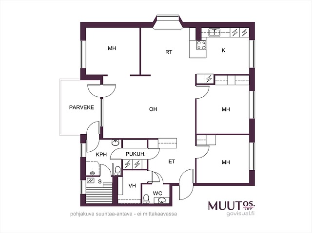 - Edellä mainittu pinta-ala saattaa tämän ikäisessä kohteessa poiketa olennaisestikin huoneiston nykyisen ja rakentamisaikaisen mittaustapojen ja standardien mukaan laskettavasta pinta-alasta. Huoneiston todellinen pinta-ala voi olla yhtiöjärjestyksessä, isännöitsijäntodistuksessa ja esitteessä mainittua pienempi tai suurempi. Hinta ei ole pinta-alaperusteinen. Yhtiöjärjestyksen mukainen huoneistoselitelmä 4h + k + sauna.