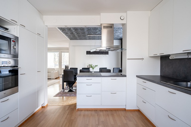 - Lattia laminaattia, seinät maalattu. Jääkaappi, pakastinkaappi, induktioliesi, liesituuletin, astianpesukone, integroitu mikroaaltouuni.
