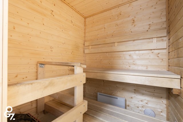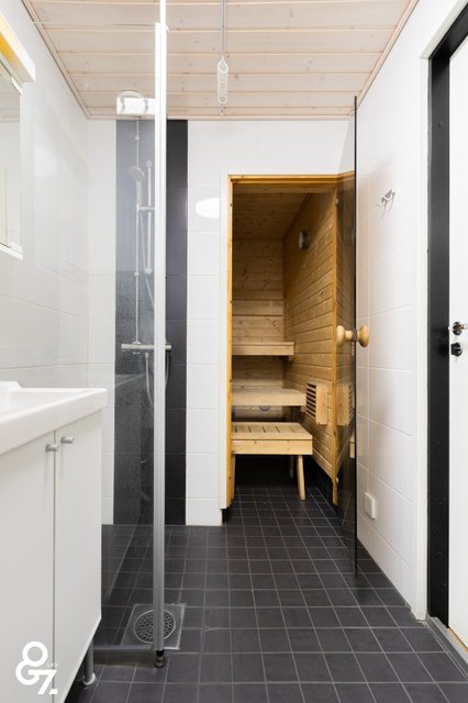 - Varustus: Sähkökiuas. Lattia: laatta Seinät: paneeli Katto: paneeli