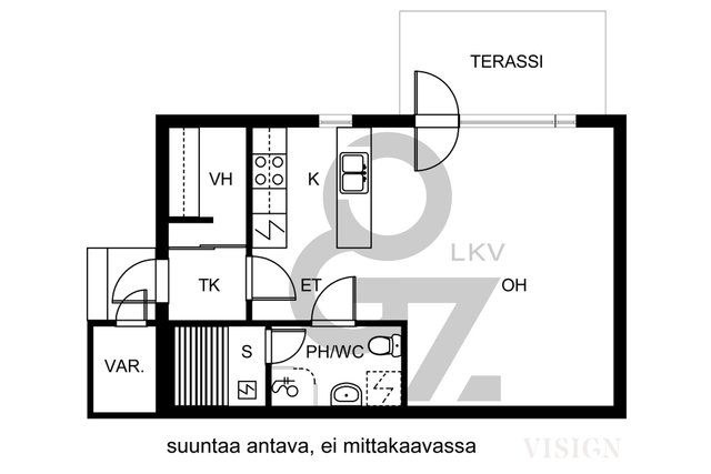 - Olohuoneesta, keittiöstä ja katetulta terassilta on eteläiset näkymät.