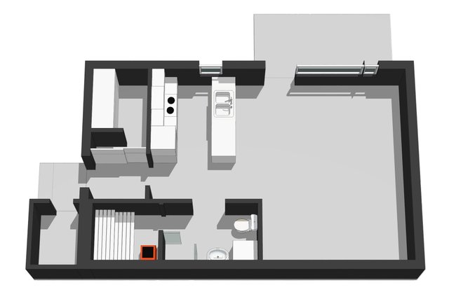 - Tämän asunnon olohuoneen pohjan muoto helpottaa makuu tilan erottamista muusta olohuoneesta. Sänkyn saa sopimaan olohuoneen perälle, mutta varsinaista omaa makuuhuonetta yksiössä ei ole.