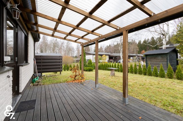 - Katettu terassi (2017 valokate) painekyllästetyllä puu pohjalla.