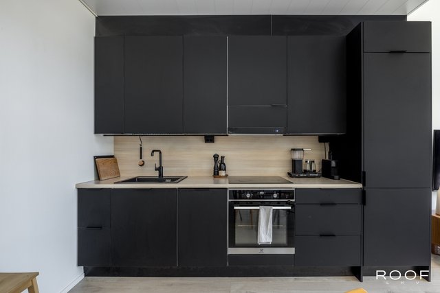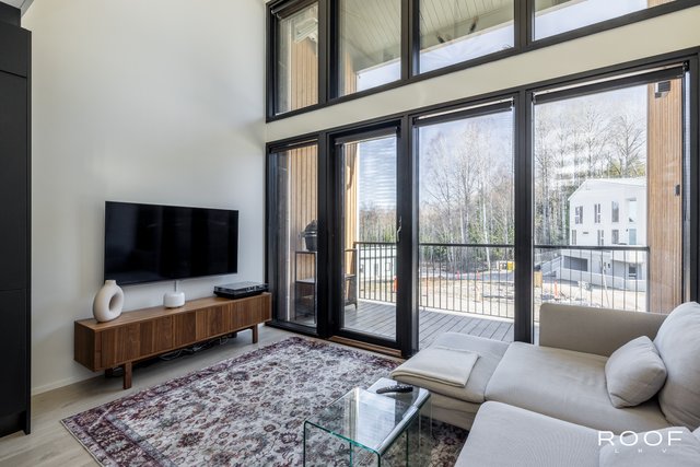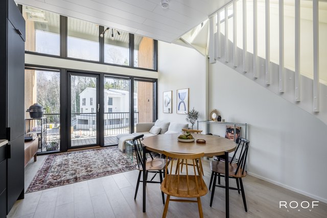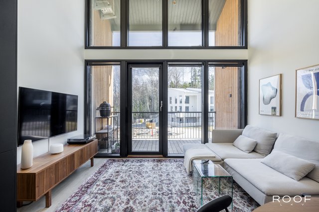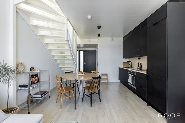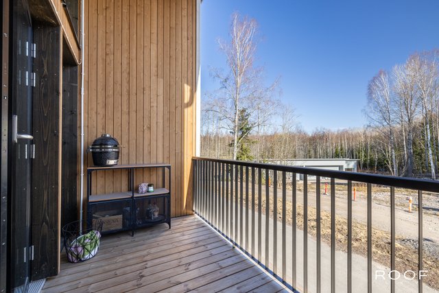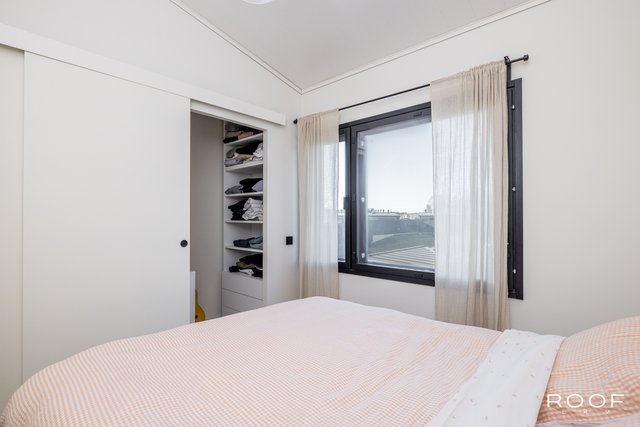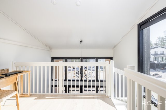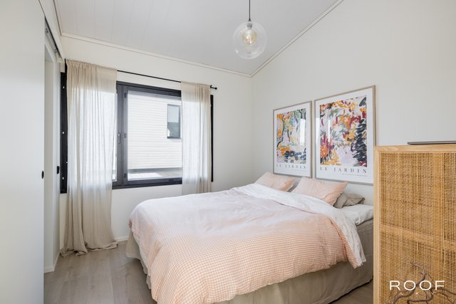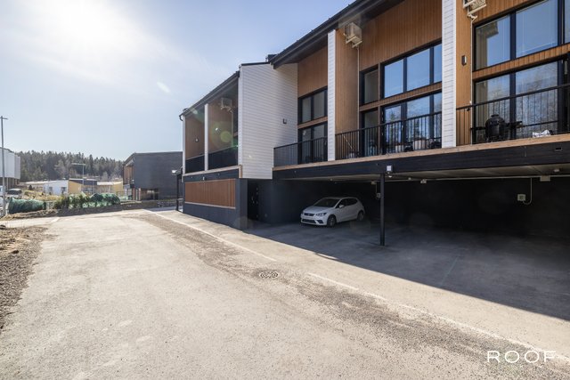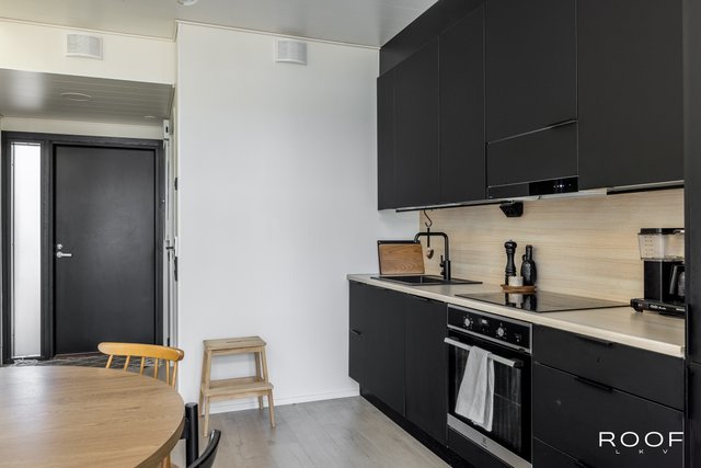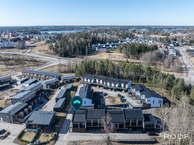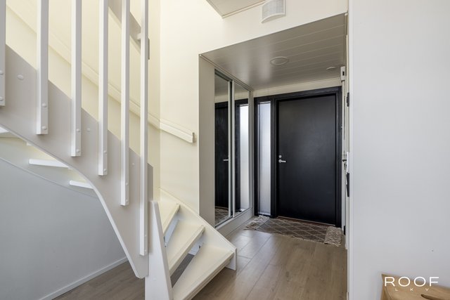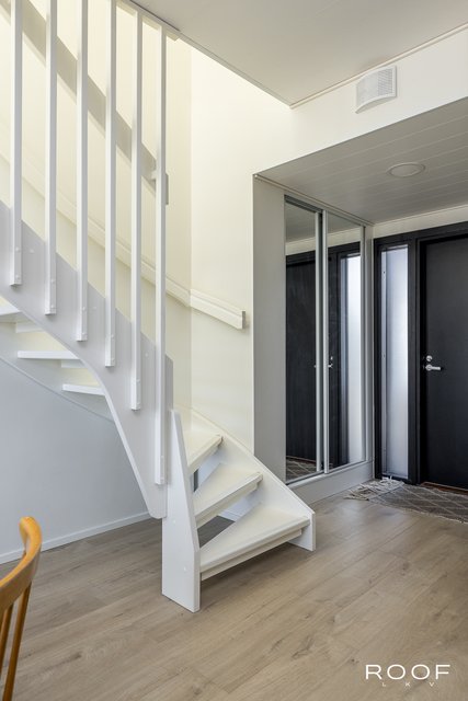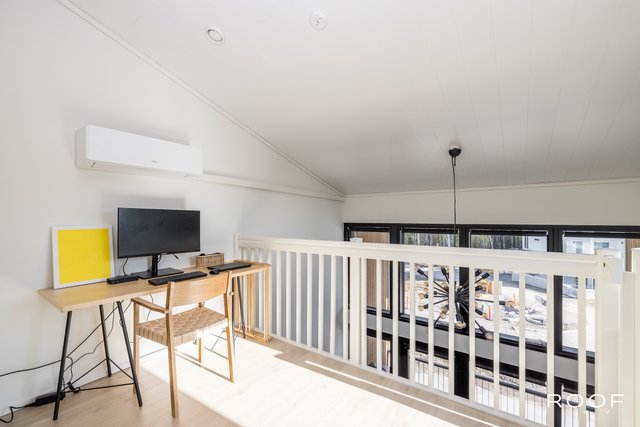 Huoneisto on avara pohjaratkaisun ansiosta. Sisääntulokerroksessa on olohuone, jossa on korkea huonekorkeus sillä tila on avoin ylös asti, tyylikäs avokeittiö sekä kylpyhuone. Yläkerrasta löytyy makuuhuone, vaatehuone sekä aulatila, jonka voi hyödyntää esimerkiksi työpisteenä. Asunnossa on myös viilennykseen ilmalämpöpumppu, jotta lämpötila ei nouse kesällä tukalaksi. Asunnon lähes kaikki materiaalit on muutettu myyjän toimesta rakennusvaiheessa, mm. tyylikäs musta keittiö, kaikki kylpyhuoneen materiaalit, lattia vaihdettu sekä seinien maalisävy on eri, kun missään muussa yhtiön asunnossa.