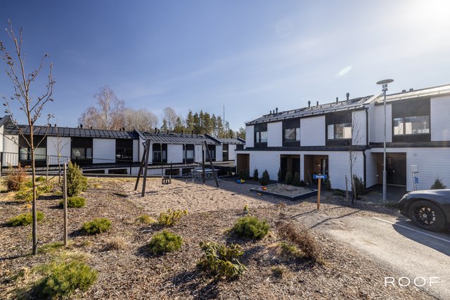 Avara rivitalokaksio rauhallisella Harmaaniityn alueella korkealla huonekorkeudella.