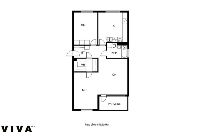 Asunnossa on kaksi makuuhuonetta, tilava olohuone ja käytännöllinen keittiö. Länteen suuntautuva lasitettu parveke tarjoaa mukavan paikan rentoutua ja nauttia ilta-auringosta. Kylpyhuoneessa on sekä amme että suihku, mikä tuo lisämukavuutta arkeen.