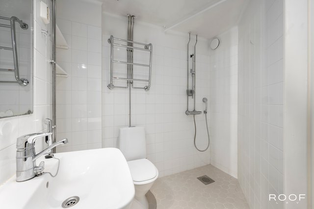 - SEINÄT: Laatta LATTIA: Laatta VARUSTUS: Suihku, Wc istuin, hana, allas, peili, pesukoneliitäntä, lattialämmitys.