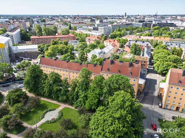 katoille asennettiin kattoturvatuotteet sekä kuuden porrashuoneen tuuletuksen parantaminen