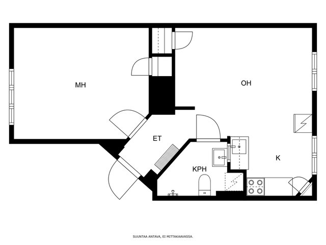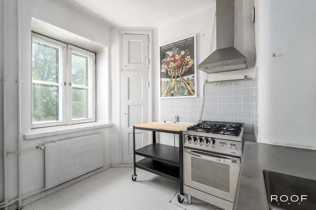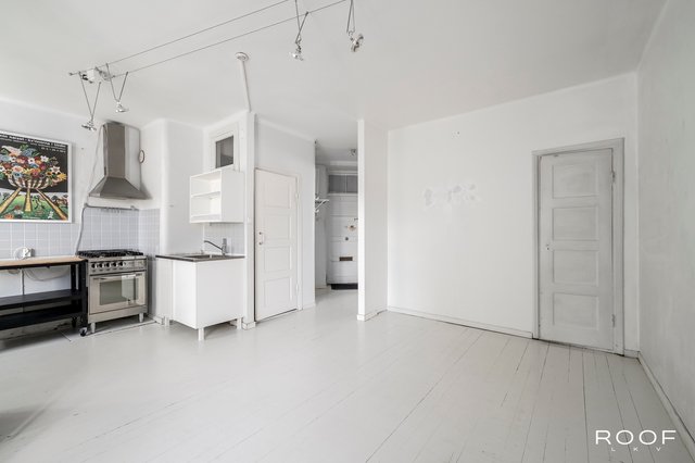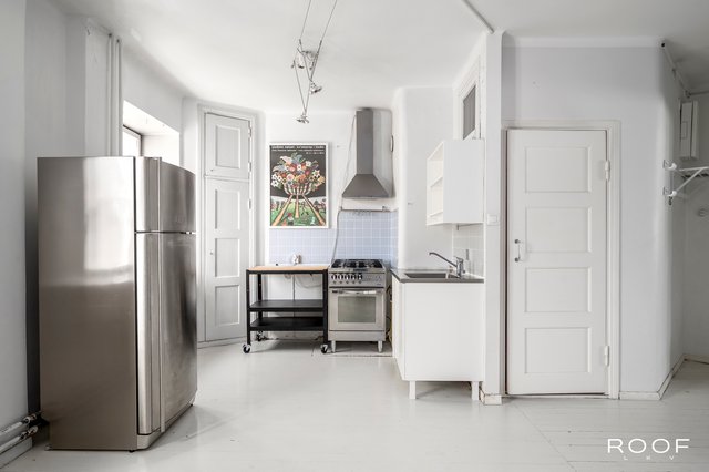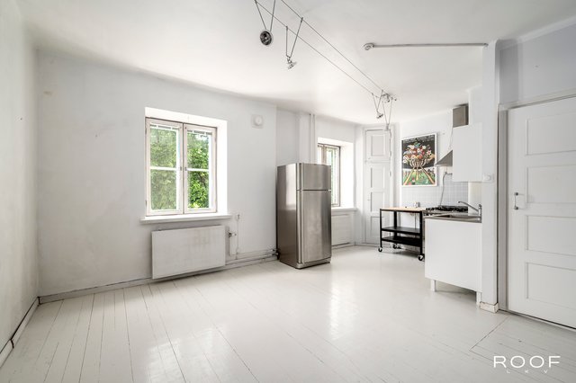 Asunnossa on käytännöllinen pohjaratkaisu: erillinen makuuhuone sekä avara olohuoneen ja avokeittiön yhdistelmä, jossa on tilaa sekä rentoutumiseen että yhdessäoloon. Keittiötä on päivitetty viimeisen kuuden vuoden aikana, modernia toimivuutta tuovat kaasuliesi ja mittatilauksena teetetty, näyttävä teräksinen tiskiallas. Kaapistot on teetetty puusepällä sopimaan talon henkeen.