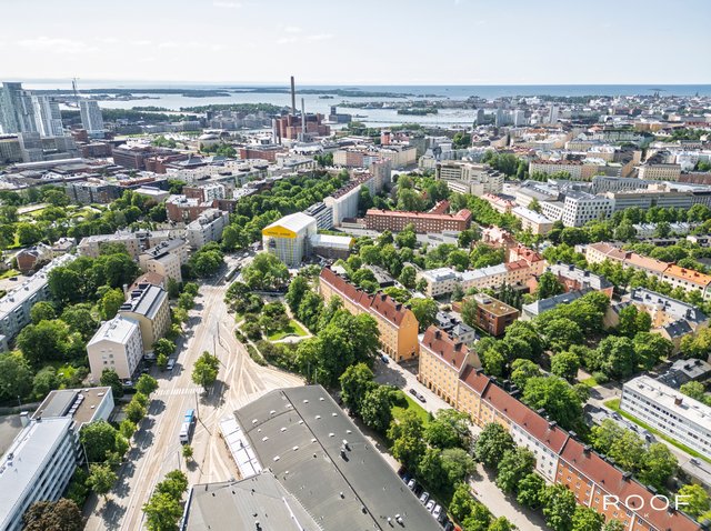 - Hyvät julkiset yhteydet, ihan läheltä kulkee runsaasti busseja sekä ratikoita. Myös metroasema on kävelymatkan etäisyydellä.