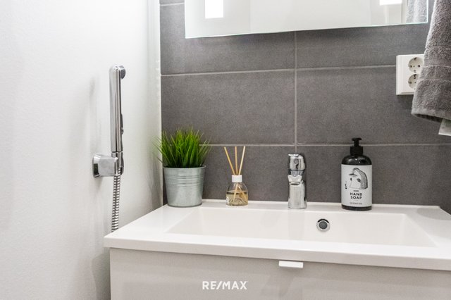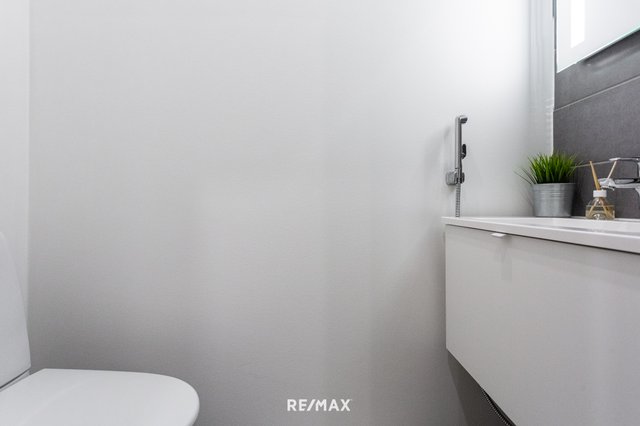 - Suihku, suihkuseinä, lattialämmitys, bidee-suihku, wc-istuin, ja yläkaappi