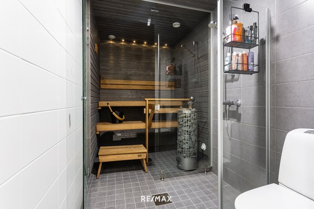Asunnon sauna tarjoaa rentouttavat löylyt tervalepälauteillaan, ja lattialämmitys tuo lisämukavuutta arkeen. Etelään suuntautuva lasitettu terassi on täydellinen paikka nauttia aamukahvista tai illanvietosta ystävien kanssa.