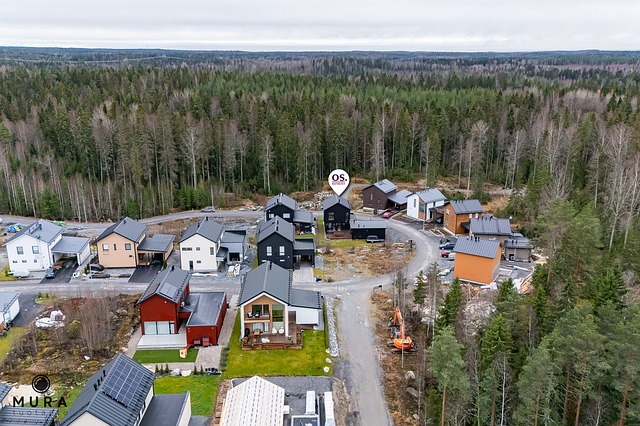Talo on valmistunut vuonna 2023, ja sen suunnittelussa on huomioitu sekä arjen tarpeet, että juhlahetket: yläkerrasta löytyy avara, korkea ja valoa tulviva olohuone-keittiötila, yksi makuuhuone sekä erillis wc. Akustoidut viistokatot ja isot ikkunapinnat tekevät tilasta todella näyttävän. Alakerrassa on kolme huonetta, joista kaksi tällä hetkellä makuuhuonekäytössä ja kolmas TV-huoneena – tarpeen mukaan helposti muutettavissa vaikka neljänneksi makuuhuoneeksi. Lisäksi käytännöllinen kodinhoitohuone, kylpyhuone ja wc.