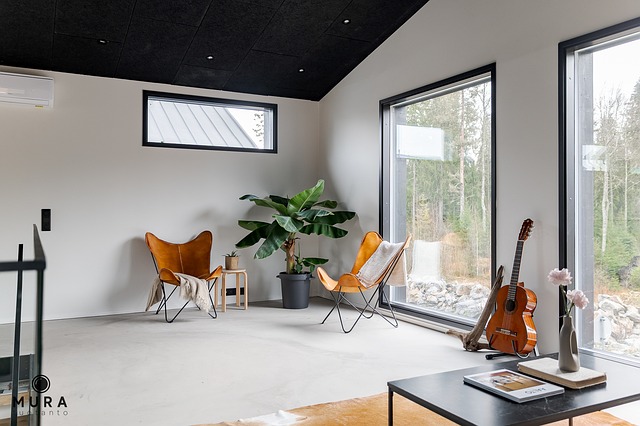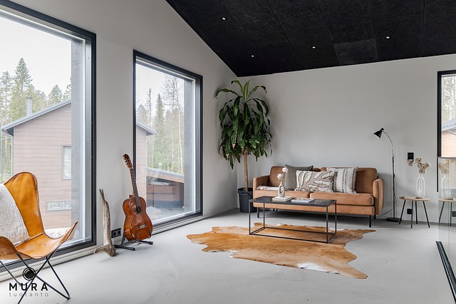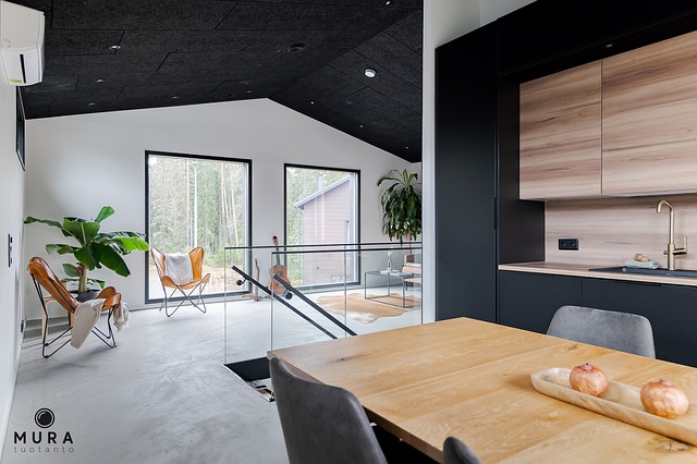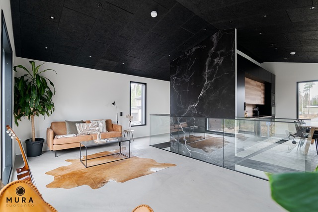 Koko kodin pinnoissa toistuu ajaton ja helppohoitoinen mikrosementti, ja vesikiertoinen lattialämmitys tuo mukavuutta läpi vuoden. Lämpö tuotetaan tehokkaalla maalämpöpumpulla, joten asumiskustannukset pysyvät kurissa.