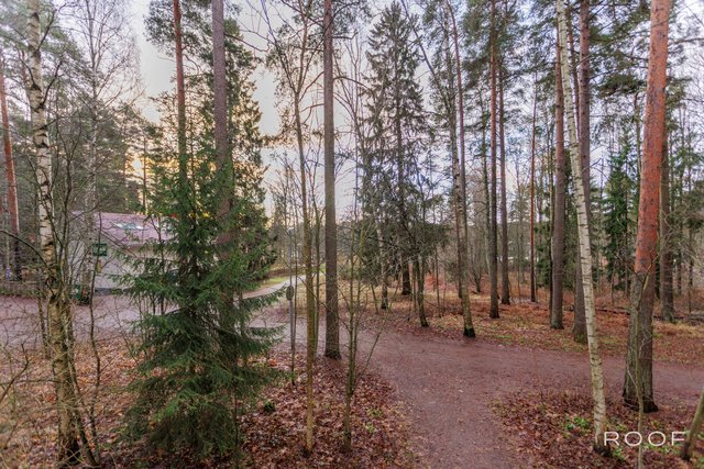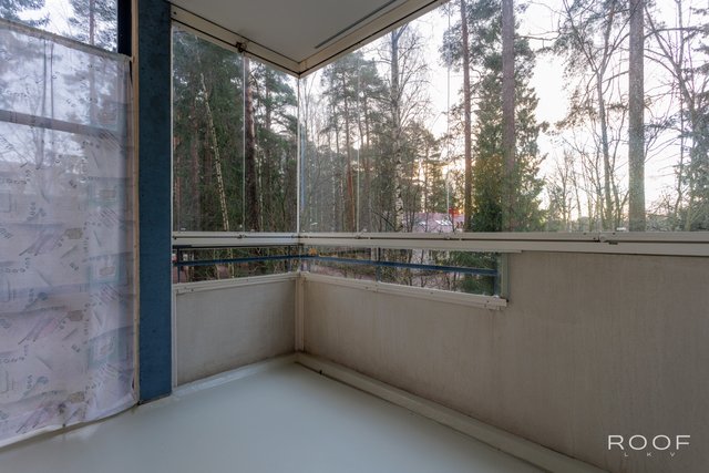 - Olohuone toimii myös ruokailutilan paikkana. Käynti lasitetulle parvekkeelle, josta on kauniit näkymät puistoon. Lattia laminaattia ja seinät maalattu.