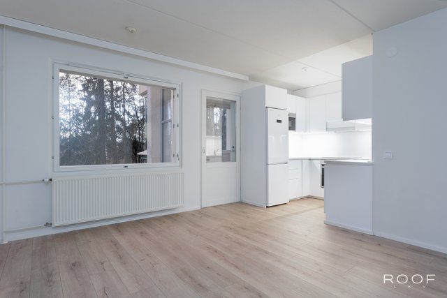 - Kaunis keittiö on uusittu vuonna 2025 eikä sitä ole remontin jälkeen käytetty. Varustus: jääkaappi/pakastin, induktioliesi, kalusteisiin sijoitettu mikroaaltouuni, liesituuletin, astianpesukone. Työtaso laminaattia. Lattia laminaattia ja seinät maalattu. Välitilassa laminaattilevy.