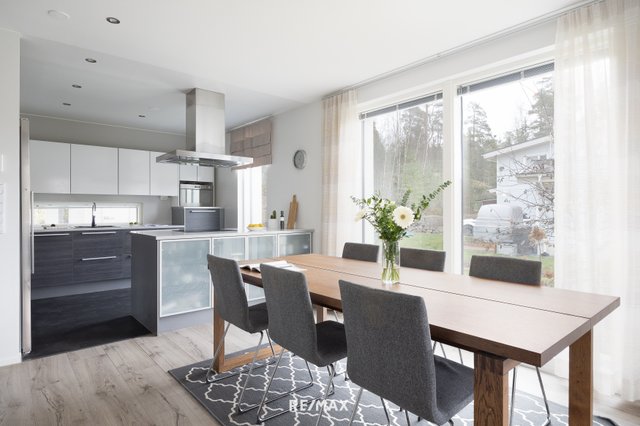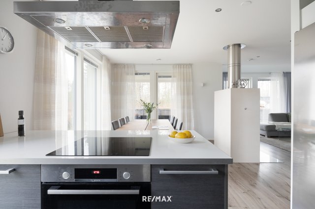 Tämä kaunis ja hyvin suunniteltu kahden kerroksen omakotitalo tarjoaa tilaa, tyyliä ja mukavuutta isommallekin perheelle ja laadukasta asumista arvostavalle. Kodin sydämen muodostaa avara keittiö- ja olohuonetila, jossa on runsaasti luonnonvaloa ja tilaa yhdessäololle. Lisäksi talosta löytyy viisi makuuhuonetta, jotka muuntuvat helposti erilaisiin elämäntilanteisiin – työhuoneiksi, lastenhuoneiksi tai vierastiloiksi.