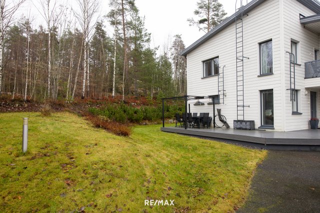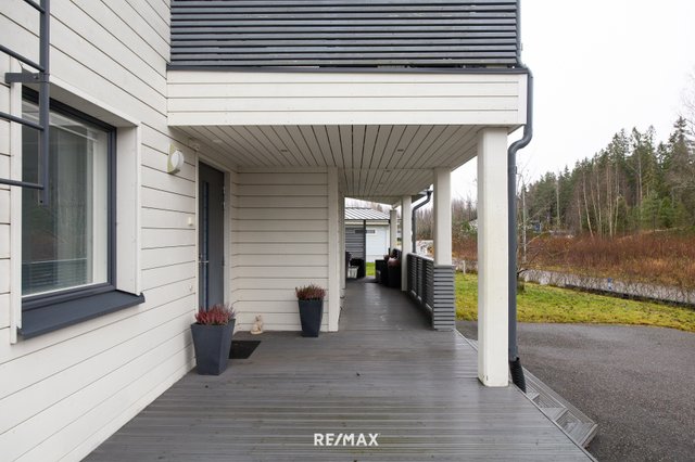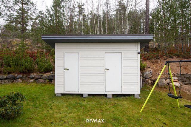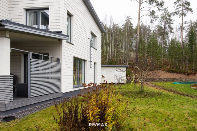 Pihapiiri tarjoaa hyvin tilaa oleskelulle ja lasten leikeille. Oma tontti rajoittuu metsäiseen rinteeseen, joka luo luonnonläheisen ja rauhallisen tunnelman – täällä saat nauttia omasta pihasta ja yksityisyydestä ilman häiriöitä. Pihalta löytyy myös autokatos kahdelle autolle sekä ulkovarasto, joka tarjoaa runsaasti säilytystilaa.