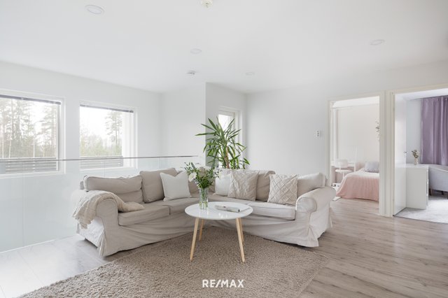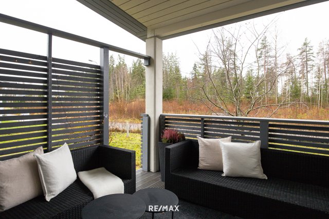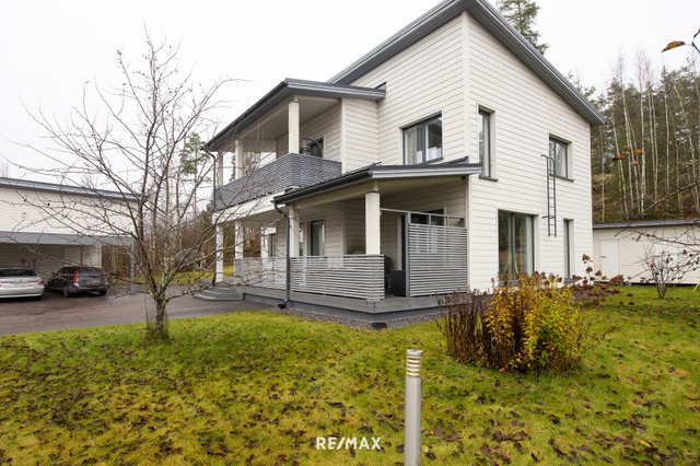Arkea helpottavat käytännöllinen kodinhoitohuone, jossa kurapiste sekä kulku suoraan omalle pihalle, erillinen yläkerran aula sekä oma sauna, jossa voit rentoutua päivän päätteeksi.
