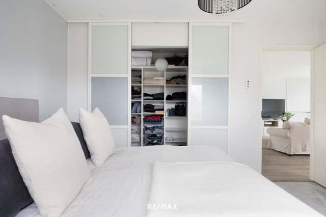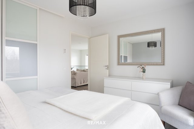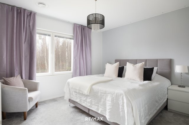 Yläkerran päämakuuhuoneessa on jalkoja ihanasti hellivä kokolattiamatto, ja pariliukuovella varustettu tilava walk-in-closet.