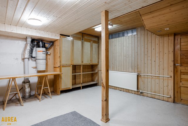 - Kellaritila jossa pukuhuone, kylpyhuone, sauna, varasto, viileäkellari sekä oleskelutila. Asunnossa keskuspölynimuri.