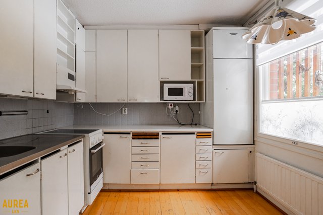 - Alkuperäiset kaapistot. Välitilassa laatta.