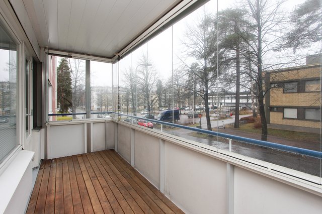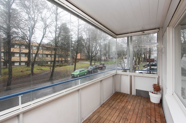 Asunnossa on kaksi makuuhuonetta, tilava olohuone sekä lasitettu parveke, joka tarjoaa mukavan lisätilan ympäri vuoden. Säilytystilana asunnossa on vaatehuone ja kaapistot, ja taloyhtiön tiloista löytyy myös huoneistolle tilava kellarikomero.