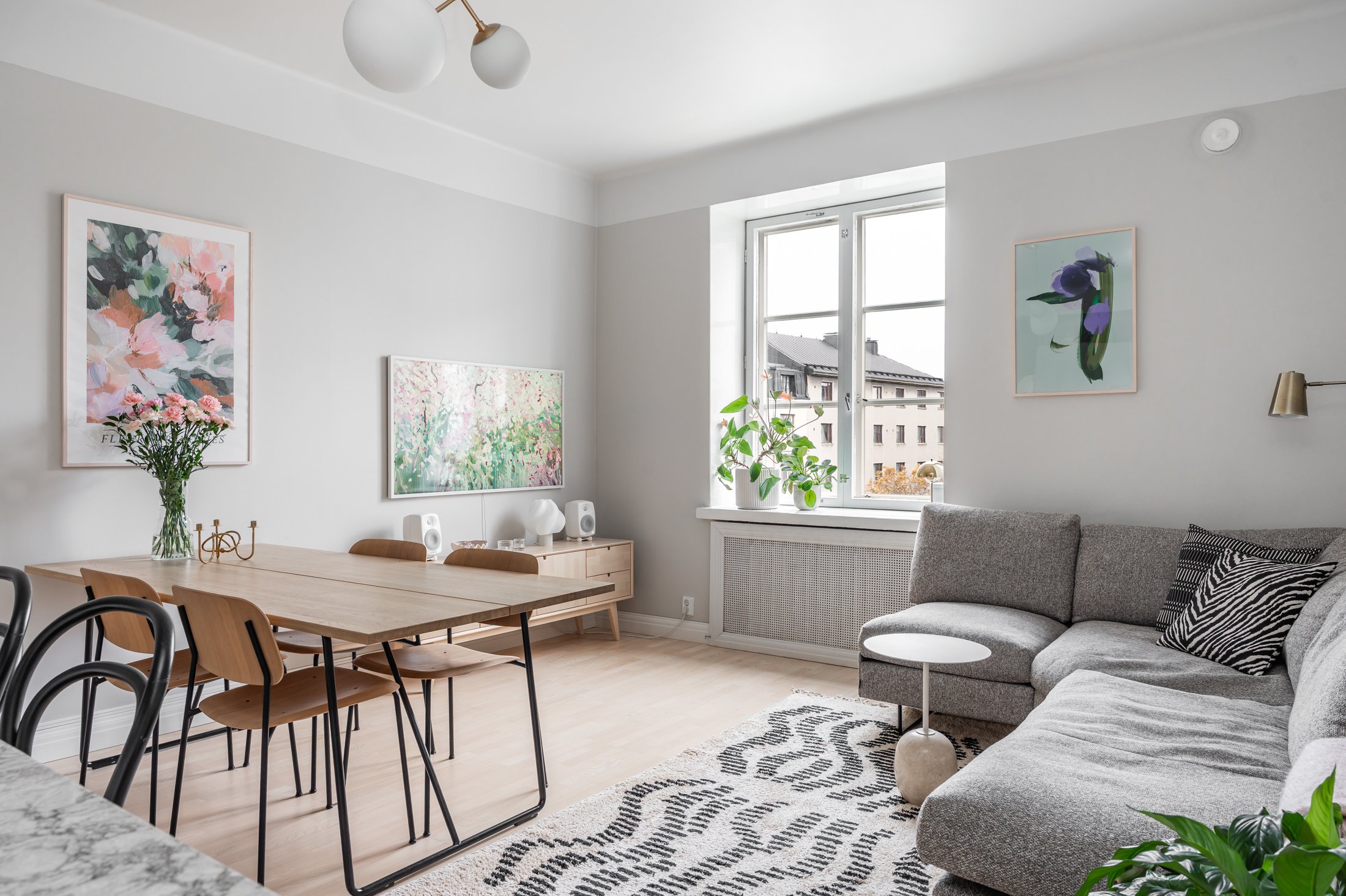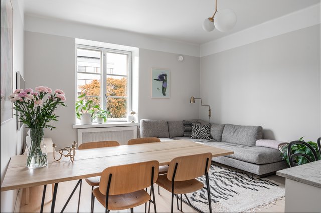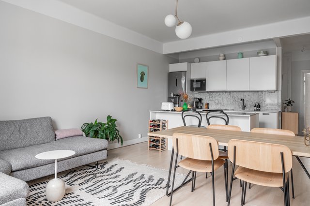 Asunto on kauttaaltaan pintaremontoitu - vaalea parkettilattia on hiottu ja seinät sekä katto maalattu neutraalein sävyin. Koko koti henkii harmonista ja ajattoman tyylikästä tunnelmaa.