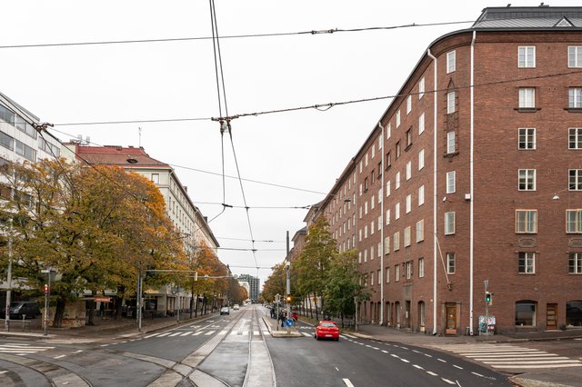Koti sijaitsee loistavien liikenneyhteyksien varrella: useita raitiovaunulinjoja kulkee aivan talon edestä, ja metrolle sekä bussipysäkeille on vain noin 500 metrin matka. Alue tarjoaa monipuoliset palvelut, ravintoloita, kahviloita, kulttuuritarjontaa sekä runsaasti harrastusmahdollisuuksia aivan kotiovella.