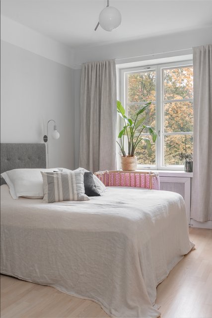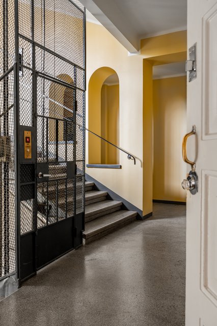 Tässä viidennen kerroksen rauhallisessa asunnossa yhdistyvät kauniisti talon alkuperäiset yksityiskohdat ja harkitut nykyaikaiset uudistukset. Korkeat huoneet, isot ikkunat ja vaaleat pinnat luovat ilmavan ja rauhallisen tunnelman.